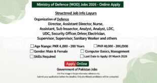 If you are looking for a secure and prestigious government career in Pakistan, Ministry of Defence (MOD) Jobs 2026 bring an excellent opportunity for both educated professionals and skilled workers. The Ministry of Defence has announced multiple vacancies for candidates across Pakistan in various departments. These positions range from high-level …