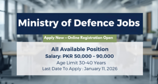 MOD Jobs 2026 – Ministry of Defence Online Apply Latest MOD Jobs 2026 have been officially announced by the Ministry of Defence (MOD), offering a valuable opportunity for skilled and qualified individuals to join one of Pakistan’s most prestigious federal institutions. These jobs are highly attractive due to competitive salaries, …