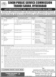 Sindh Public Service Commission (SPSC) Hyderabad has announced new Sindh Government job opportunities for the year 2026 through Advertisement No. 13/2025 dated 18 December 2025. These vacancies are for Driver (BPS-04) and multiple Class-IV / BPS-01 staff positions, including Naib Qasid, Chowkidar, Mali, Peon, and other support staff roles.